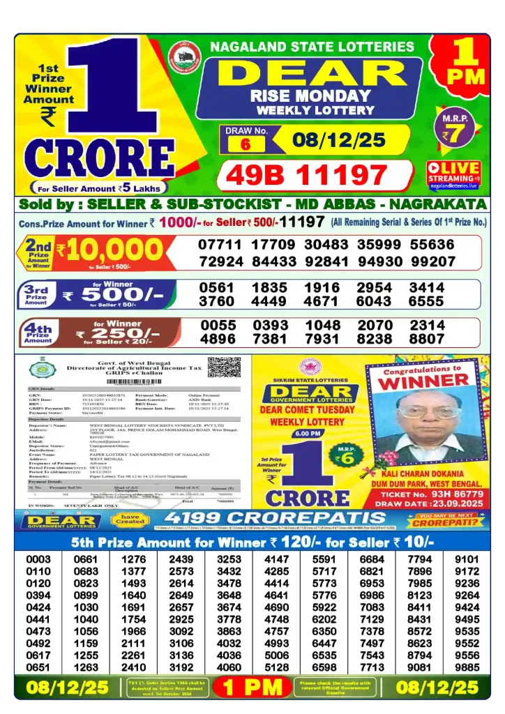 नागालैंड राज्य लॉटरी परिणाम लाइव अपडेट