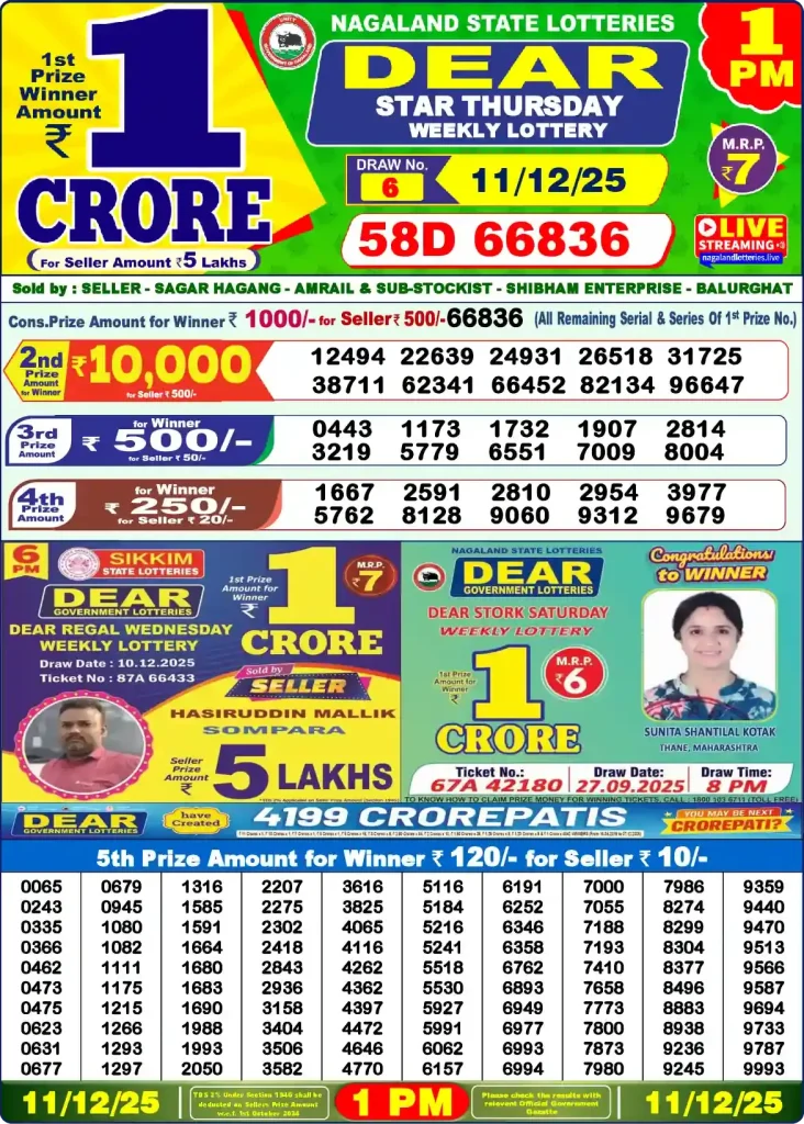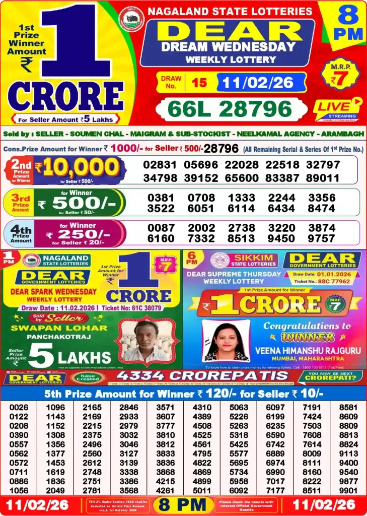 You can check Nagaland State Lottery Result today 1 PM, 6 PM, 8 PM on this page for free. All Dear Lottery Sambad results are available here online. You can check Dear Lottery Result today online anytime free of cost.